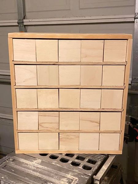 LOL! The site to give you construction instructions for an heirloom Advent Calendar is 'under construction'. I expect to flesh out a lot more details later, but finishing the book versions and the main website as a whole will take priority. So, if these plans seem still a little vague, my apologies. I'll get deeper into this and complete it when I can. But with a tablesaw and the measurements and materials listed below, you SHOULD be able to complete one of your own. Happy constructing!